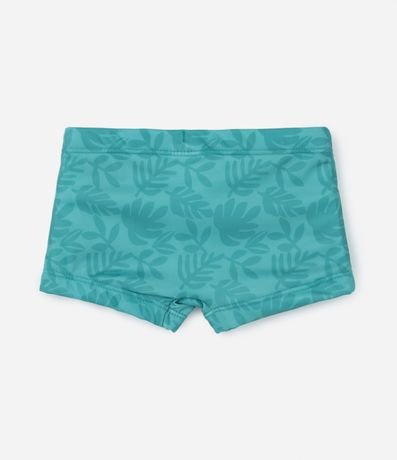 Ref: Sunga boxer infantil em microfibra com cordão interno e estampa de folhagem.