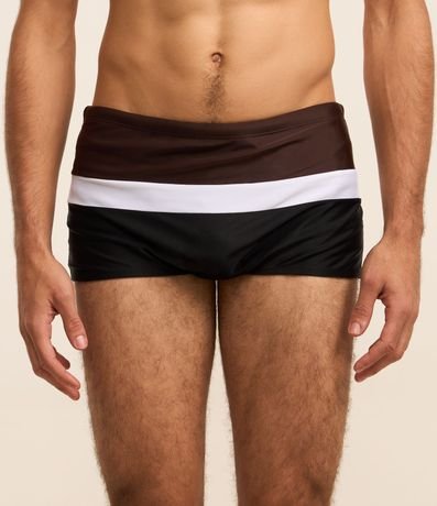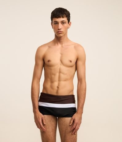 Ref: Sunga masculina confeccionada em microfibra, com padronagem em blocos de cor e amarração interna na cintura.