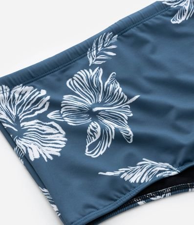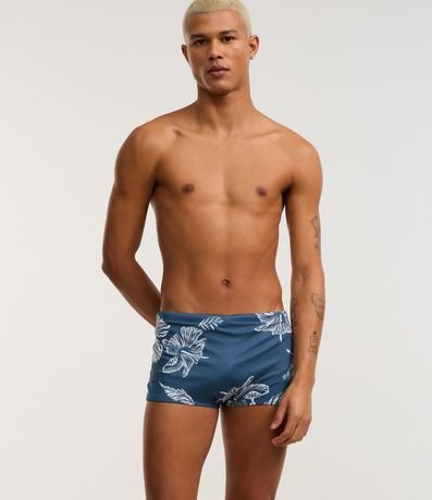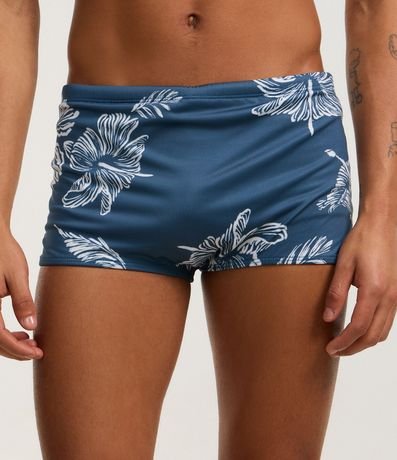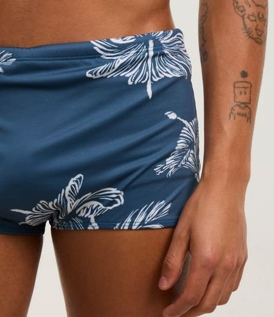 Sunga em Microfibra com Estampa de Folhagem e Cordão Interno
