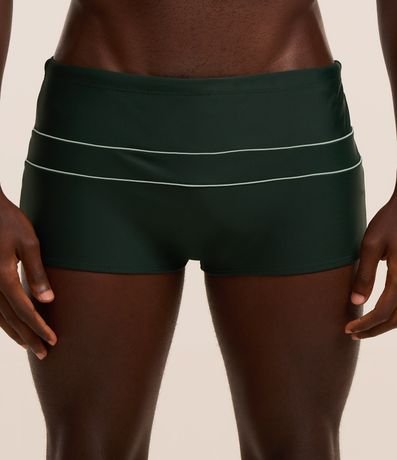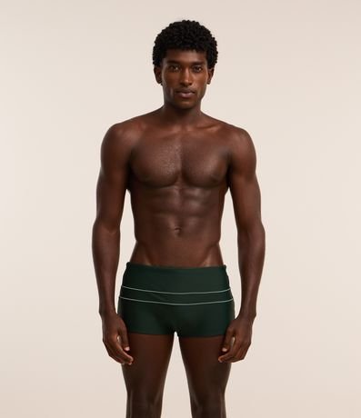 Ref: Sunga masculina confeccionada em poliamida com amarração interna e detalhes de listras horizontais.