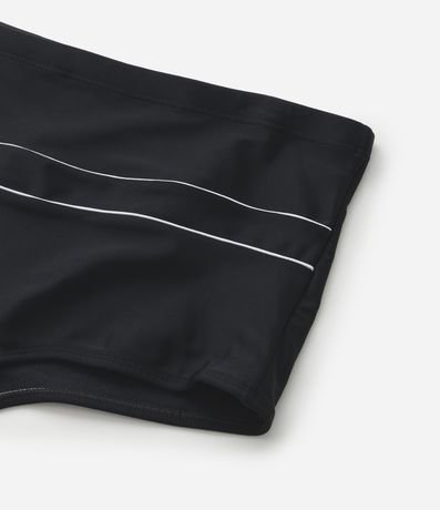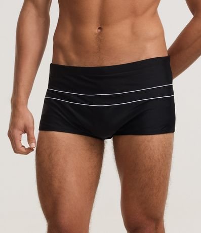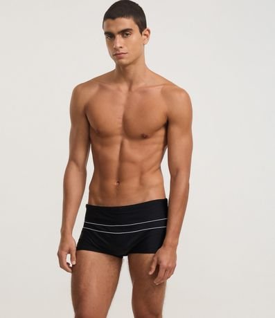 Ref: Sunga masculina confeccionada em poliamida com amarração interna e detalhes de listras horizontais.