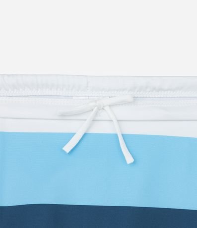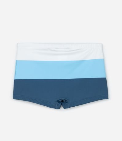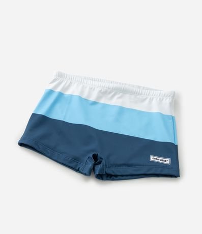 Ref: Sunga infantil confeccionada em microfibra, de modelo boxer, com amarração interna e estampa de blocos de cor.