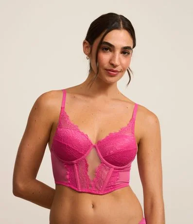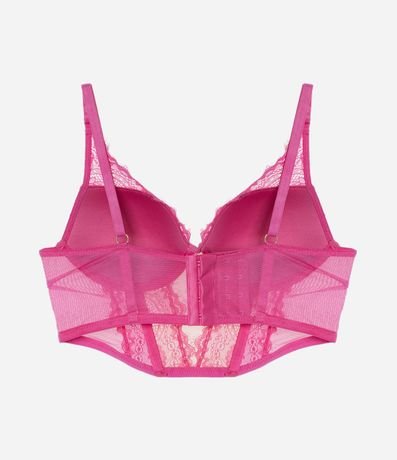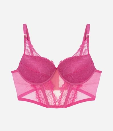 Ref: Este sutiã é um modelo alongado com bojo oco, confeccionado em renda com padrão floral. A peça possui uma estrutura que lembra um corset, proporcionando um visual romântico e sofisticado, ideal para momentos especiais.
