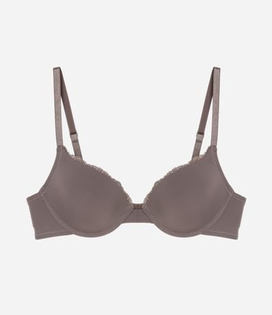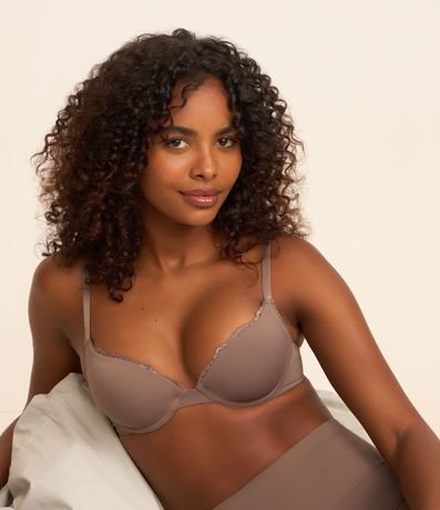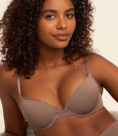Ref: Sutiã de microfibra modelo base com bojo sem enchimento. O produto tem alças finas ajustáveis e detalhe de renda no decote.