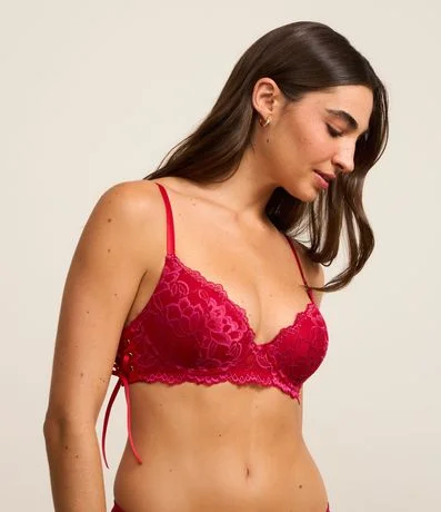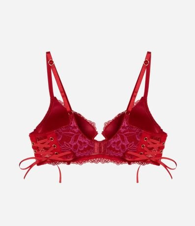 Ref: Sutiã base em renda floral bicolor. A peça super sensual tem bojo oco, alças finas reguláveis e amarrações laterais.