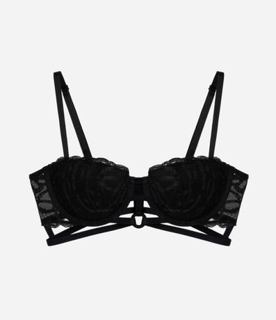 Ref: Sutiã feminino base com bojo oco e tule bordado. Pela com vários recortes vazados e fechamento nas costas.