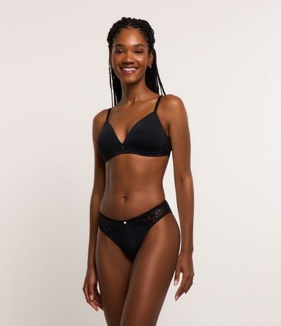 Ref: Sutiã bojo triangular feminino, confeccionado em poliamida, com alças reguláveis, detalhe rendado e fechamento nas costas.