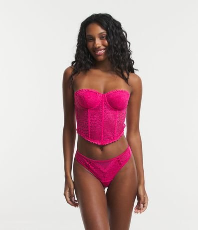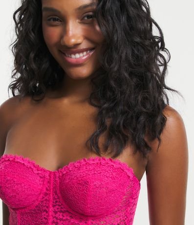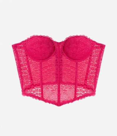Sutiã Corset Alongado Sem Bojo em Renda Floral