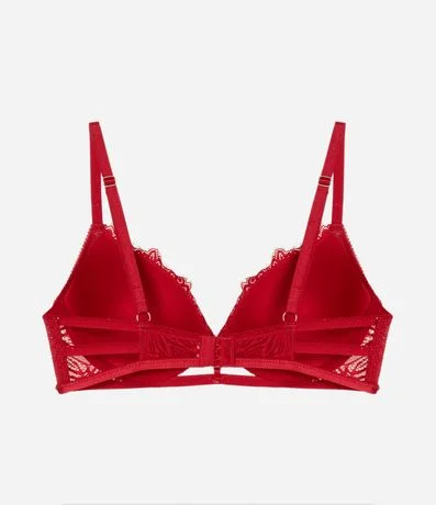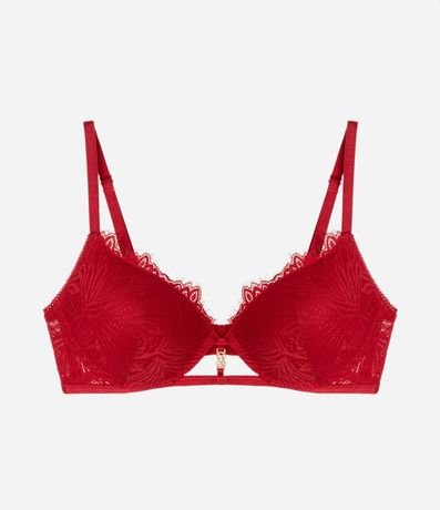Sutiã Meia Taça Bojo Oco em Renda Floral com Detalhe Metálico