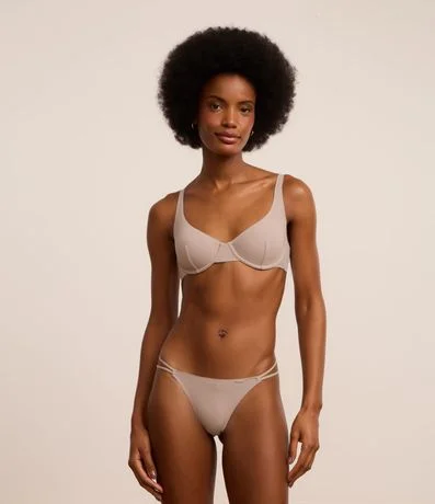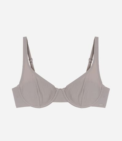 Ref: Sutiã básico confeccionado em microfibra texturizada e sem estampa. A peça meia taça não tem bojo e tem aro, alças ajustáveis e fechamento nas costas.