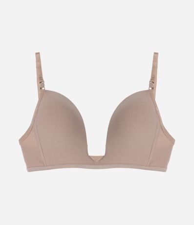 Ref: Sutiã de microfibra sem estampa e sem ato. A peça tem decote profundo em U, bojo moldado, base alongada e reforçada, alças reguláveis e removíveis com fecho giratório.