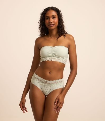 Peça avulsa de lingerie feminina, confeccionada em microfibra, sem alça e sem estampa. Possui textura e barra com acabamento em renda.