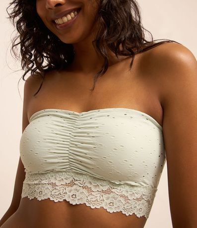 Sutiã sem Alça em Microfibra Texturizada com Renda