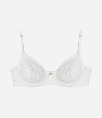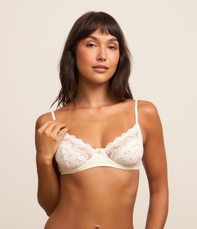 Ref: Sutiã com aro e sem bojo. A peça é confeccionada em microfibra com textura efeito laise e tem aplicação de renda no decote. As alças são finas e reguláveis.
