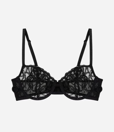 Ref: Sutiã feminino sem bojo com aro e tule bordado. Peça com alças finas e fechamento nas costas.