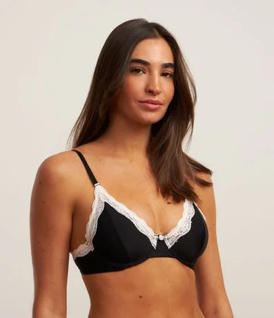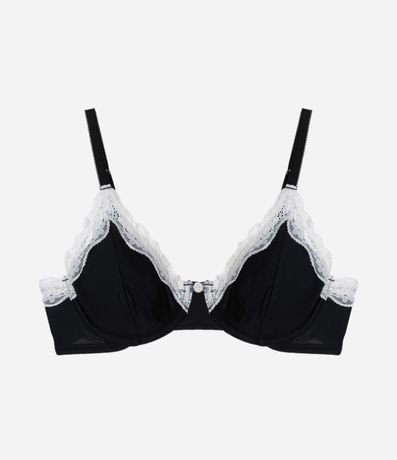 Sutiã confeccionado com microfibra certificada Oeko Tex. Essa peça não tem bojo, tem aro, detalhes de renda e aplicação de rendinha.