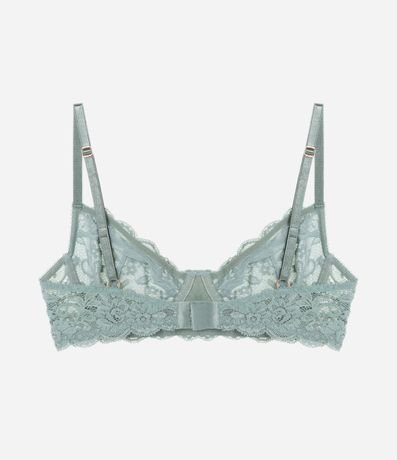 Sutiã sem bojo e com aro em renda floral, com alças reguláveis e fechamento nas costas.