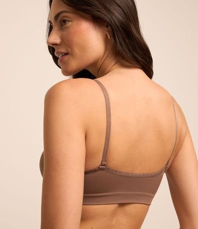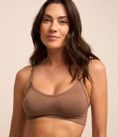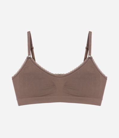 Ref: Lingerie feminina confeccionada em malha seamless, de modelo sutiã, sem bojo e sem aro. Possui alças reguláveis e detalhe de rendinha no acabamento superior.