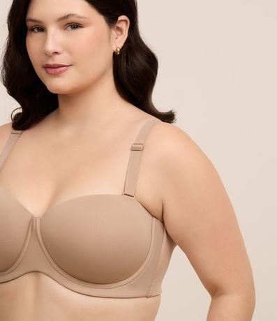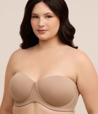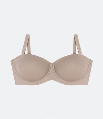 Ref: Sutiã tomara que caia em poliamida, com bojo, alças removíveis e reguláveis, fechamento nas costas e sem estampa.