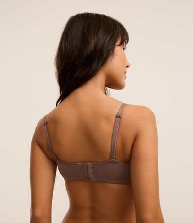 Sutiã tomara que caia feminino, confeccionado em poliamida, com alça removível e fechamento costas.