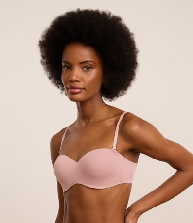 Sutiã tomara que caia feminino, confeccionado em poliamida, com alça removível e fechamento costas.
