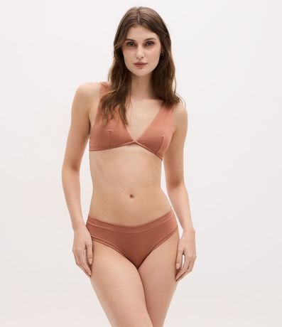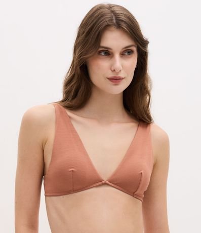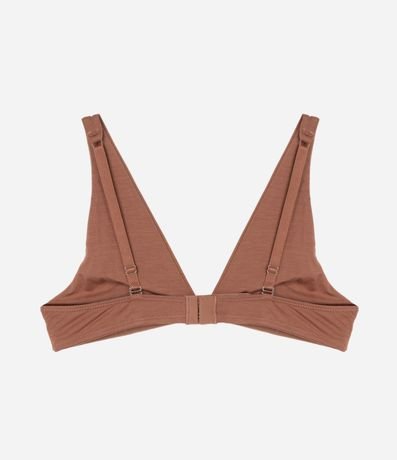 Sutiã feminino confeccionado em modal, no modelo top. Possui decote v, alças largas, com ajuste, sem estampa, sem bojo e sem aro.