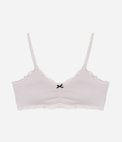 Peça avulsa de lingerie confeccionada em poliamida com acabamento seamless e sem estampa. O sutiã top tem bojos removíveis, alças reguláveis, busto franzido e aplicação de topinho contrastante.