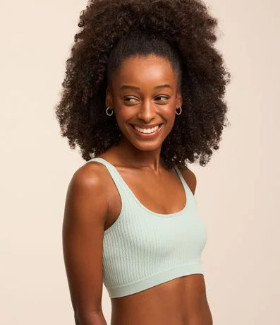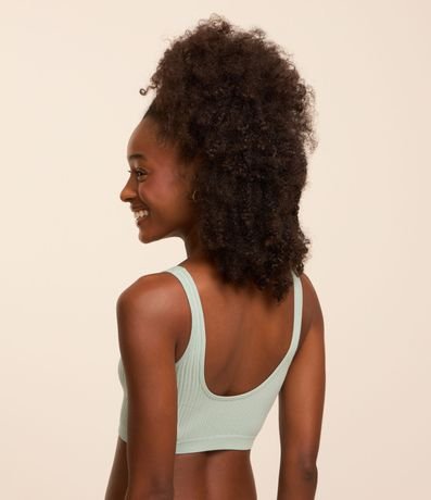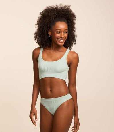 Ref: Sutiã top em poliamida, sem bojo e aro, com decote redondo, alças médias e textura canelada.