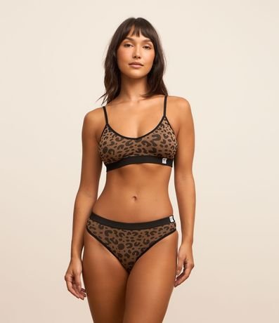 Sutiã top confeccionado em poliamida texturizada e estampada com o print do momento -- oncinha! O produto tem decote V e alças finas ajustáveis. Este top não tem bojo, aro ou fechamento.