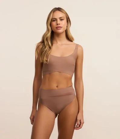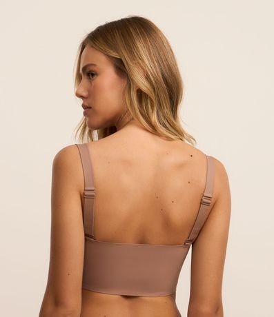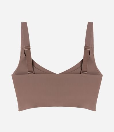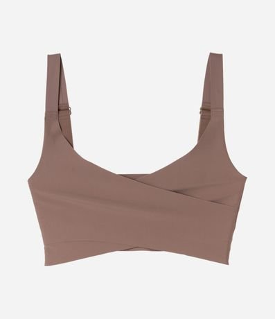 Ref: Sutiã top confeccionado em microfibra sem estampa. A peça tem alças largas reguláveis, frente cruzada e costas largas sem fechamento. Modelo sem bojo e sem aro.