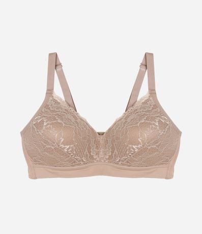 Ref: Sutiã de alta sustentação, com bojo e sem aro. A peça tem alças largas reguláveis, laterais largas, bojo triangular e aplicação de renda floral.