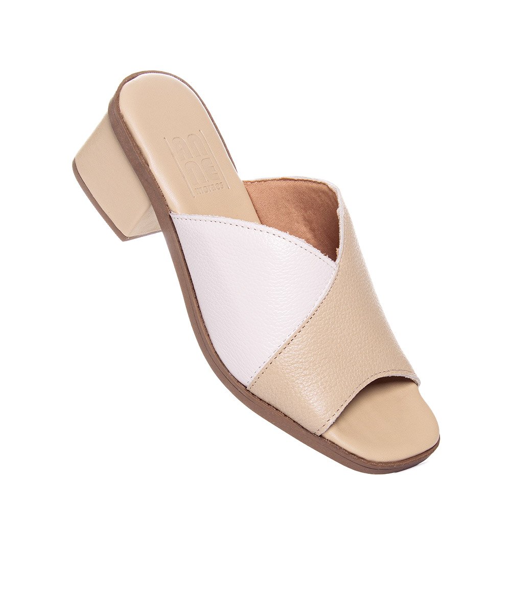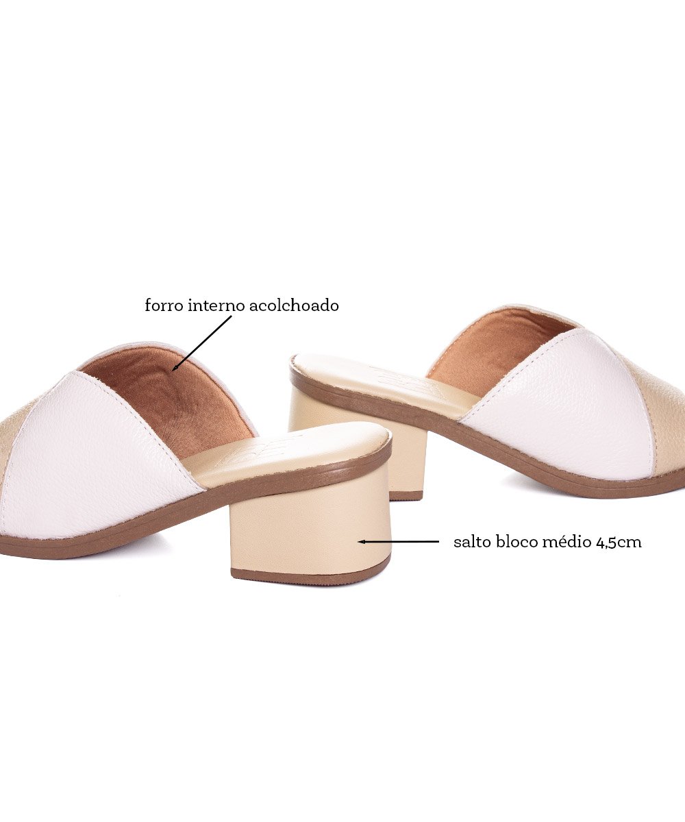 Tamanco Anne Moraes Salto Médio Couro Bege