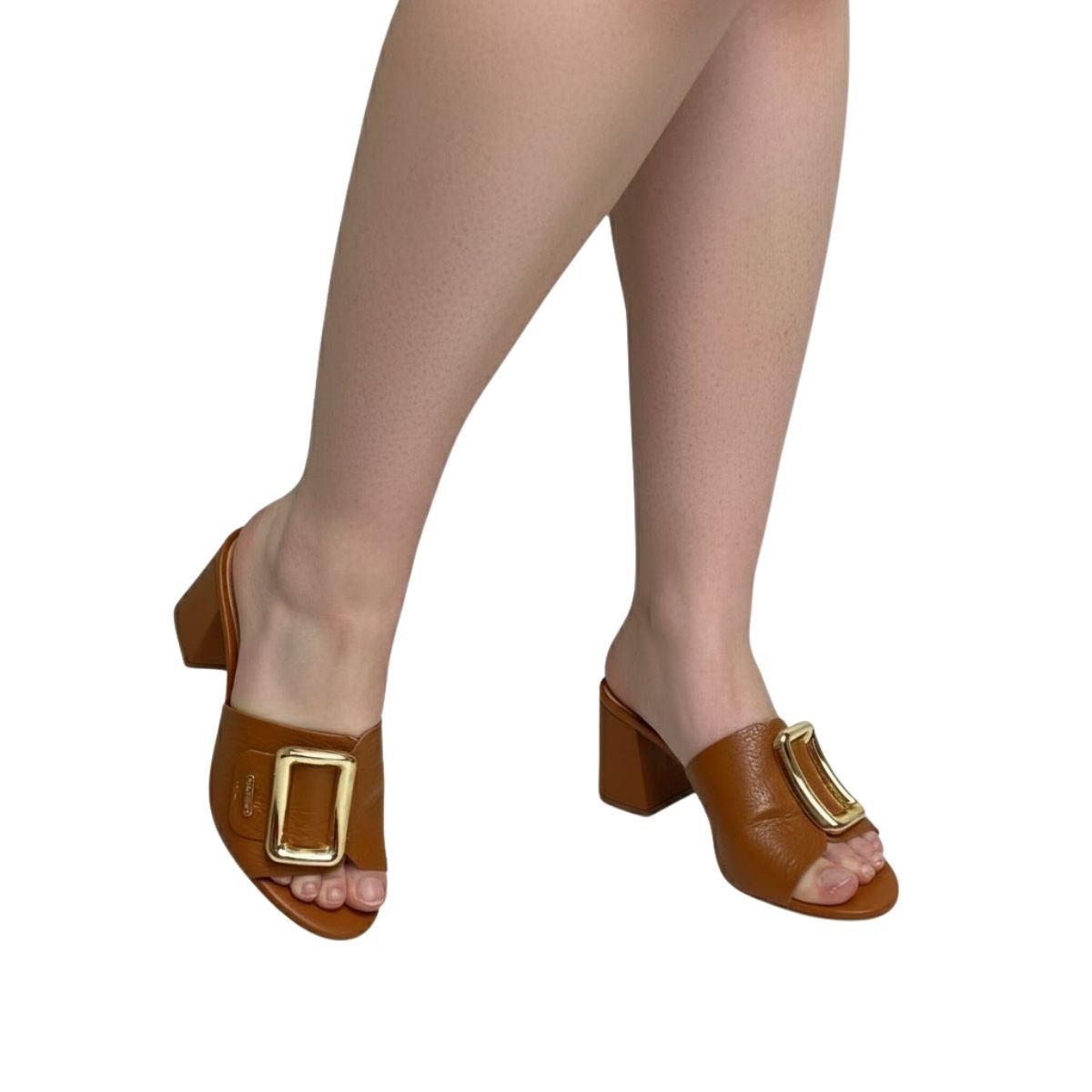 Com salto bloco de aproximadamente 7 cm, o modelo entrega a altura ideal, garantindo estabilidade e bem-estar durante todo o uso. Confeccionado em couro legítimo, oferece maciez, resistência e um ajuste perfeito aos pés.