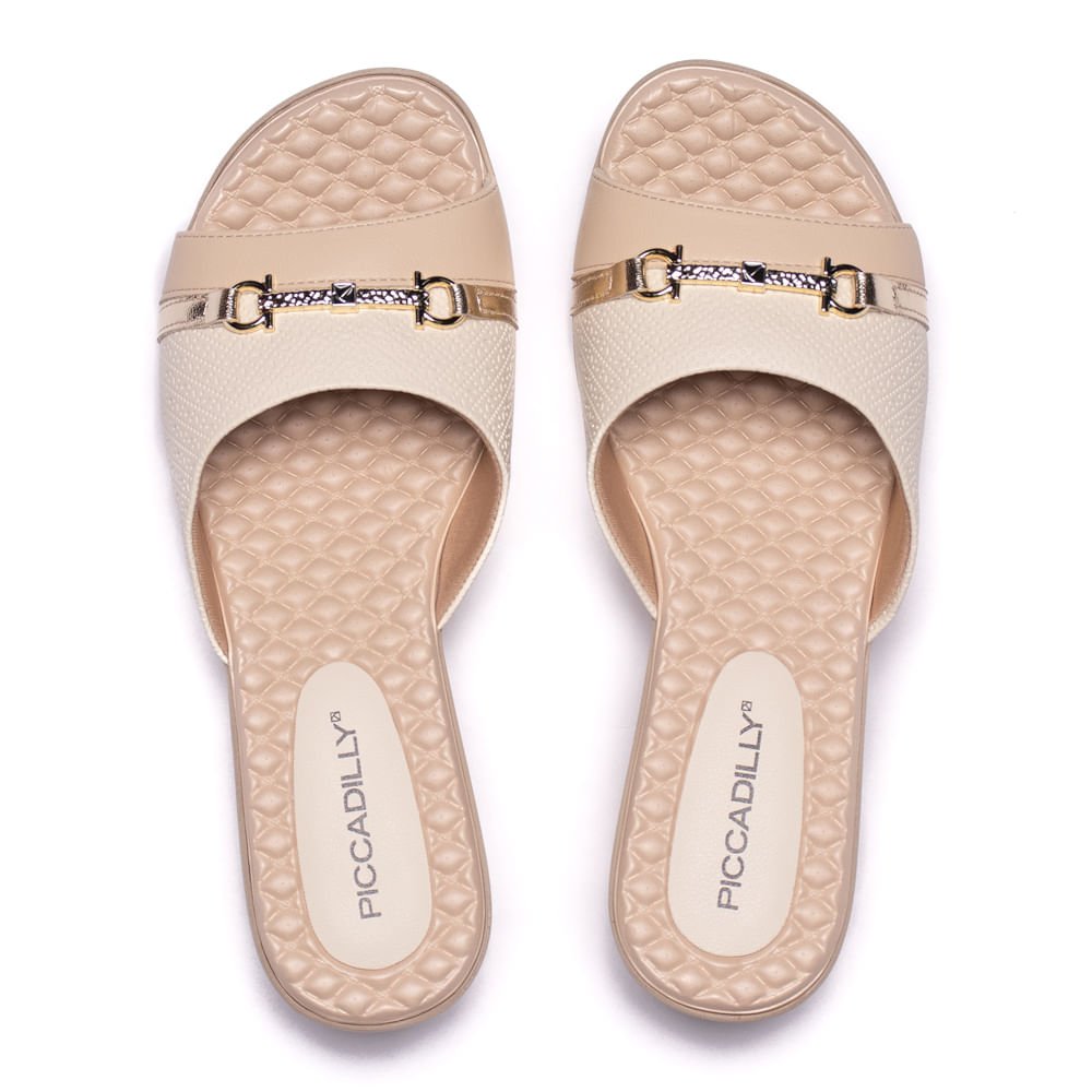 Tamanco Feminino Piccadilly Wide Fit Anabela Médio Bege