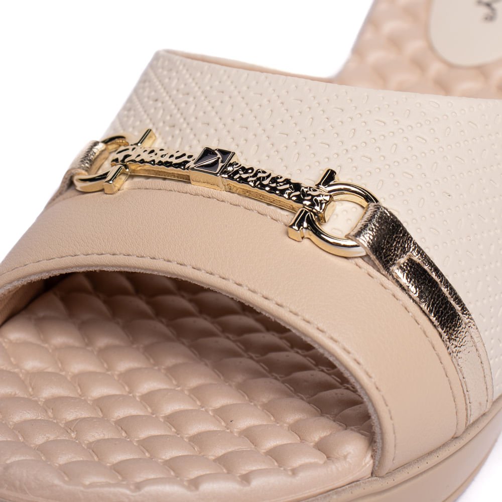O modelo é confeccionado em napa sintética e conta com cabedal texturizado em tira grossa, adornada por detalhe metálico que adiciona sofisticação e modernidade ao visual. O salto anabela de 5 cm oferece estabilidade e leveza, ideal para acompanhar sua rotina com praticidade. Destaque para a tecnologia Wide Fit, que se ajusta às medidas especiais dos pés, proporcionando mais conforto e prevenindo dores na região do joanete. Além disso, o tamanco possui palmilha macia de fácil limpeza, forro fofinho e acabamento superconforto, garantindo bem-estar prolongado.