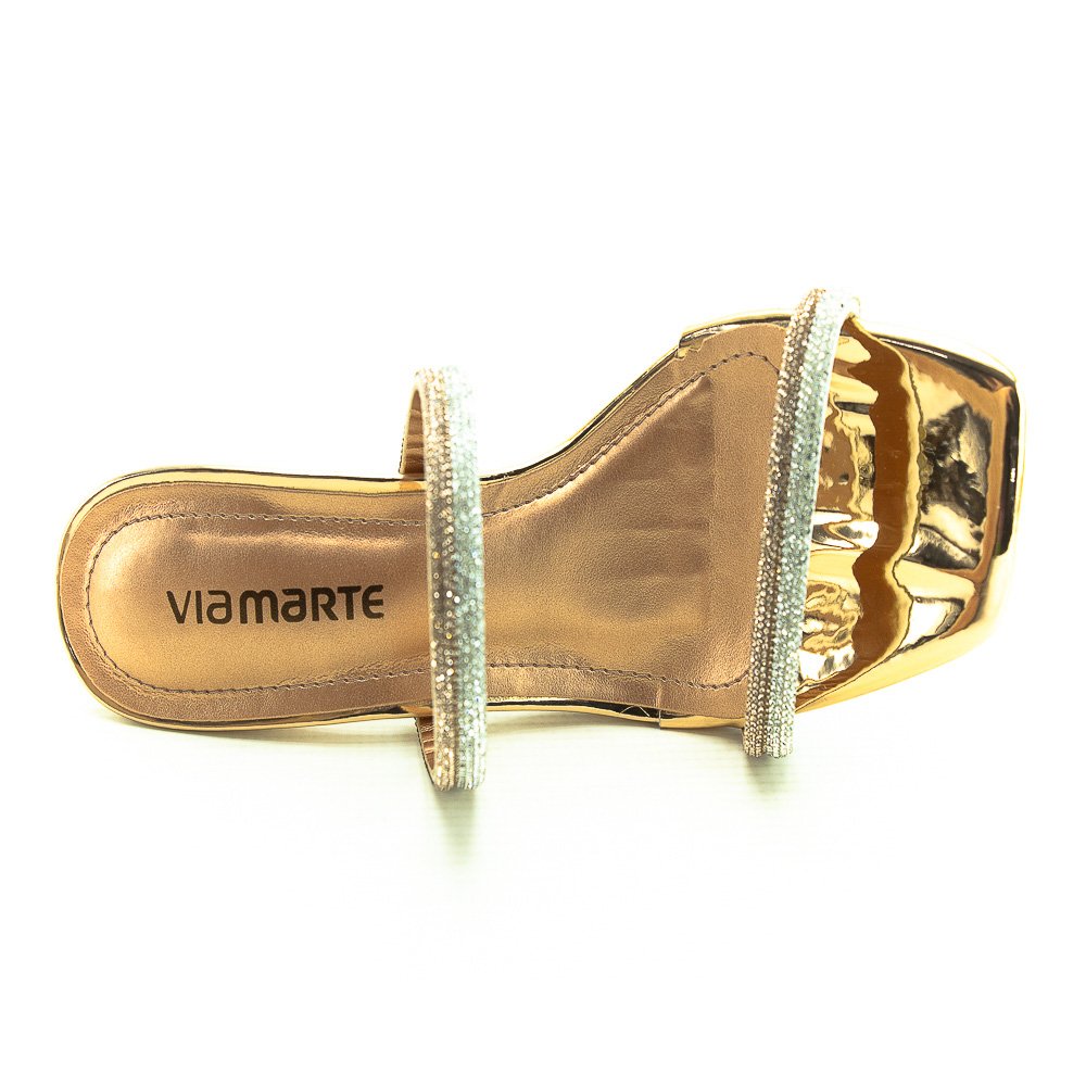O Tamanco de Salto Médio da Via Marte combina estilo e conforto de maneira exemplar. Com seu salto de altura moderada e bico quadrado, ela exala elegância e sofisticação. Este modelo apresenta tiras brilhantes, Ideal para ocasiões especiais ou para o dia a dia, esta sandália é a escolha perfeita para quem busca estilo e sofisticação a cada passo.