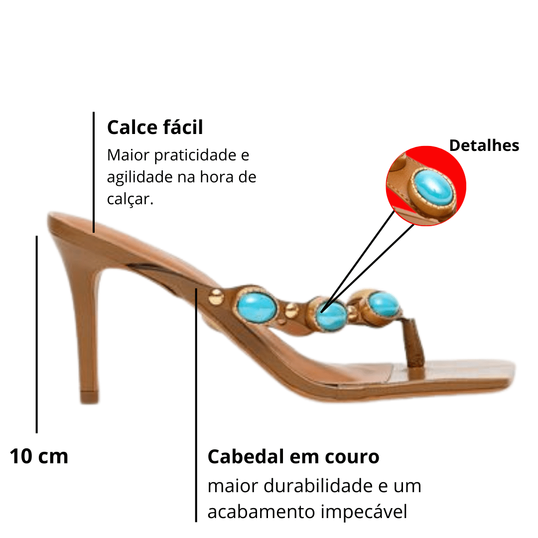 Modelo: Tamanco Lança Perfume Feminina Salto Fino Pedraria Ambar Couro