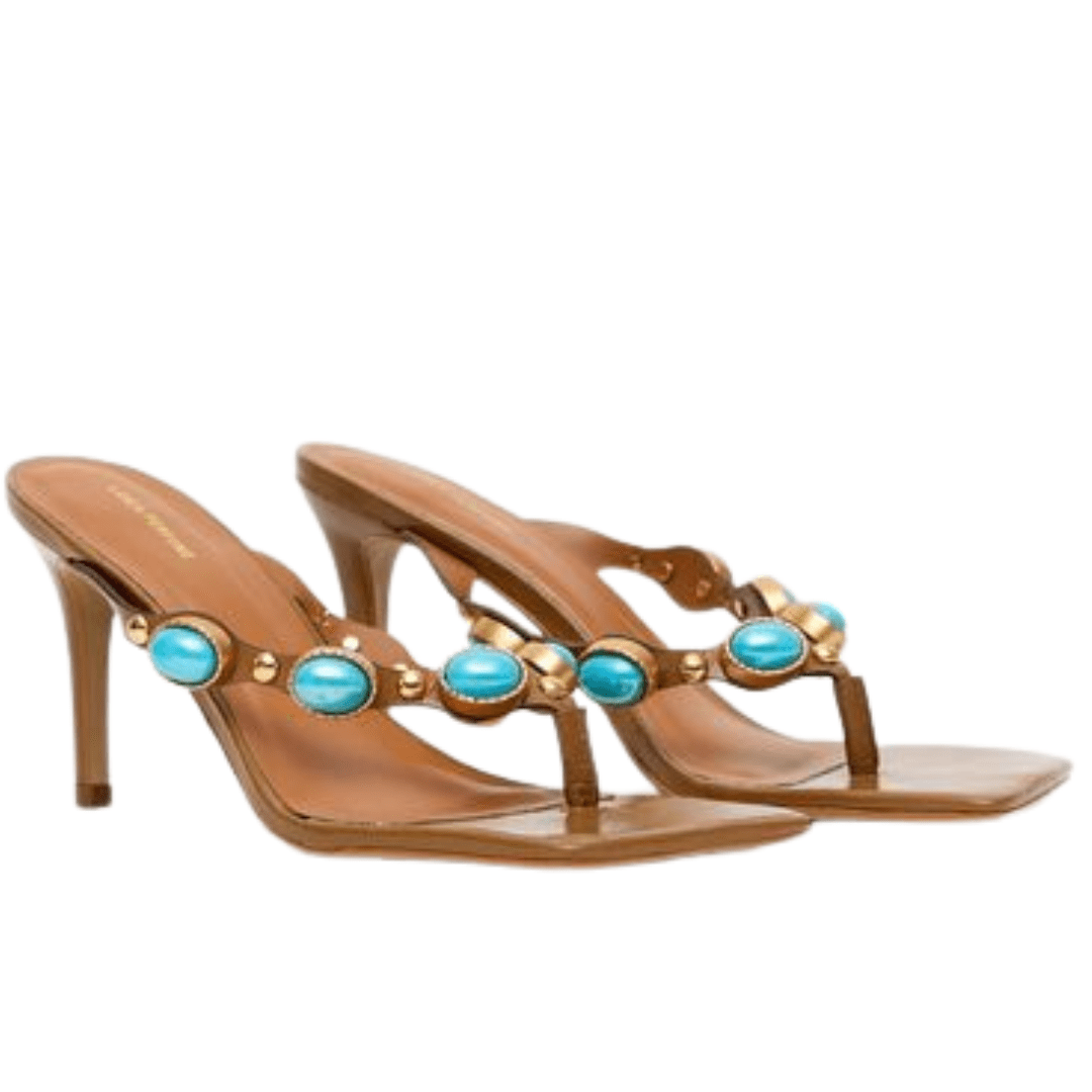 Garanta já a sua Sandália Lança Perfume Salto Fino Pedraria Ambar Couro e eleve seus looks a outro nível de sofisticação.