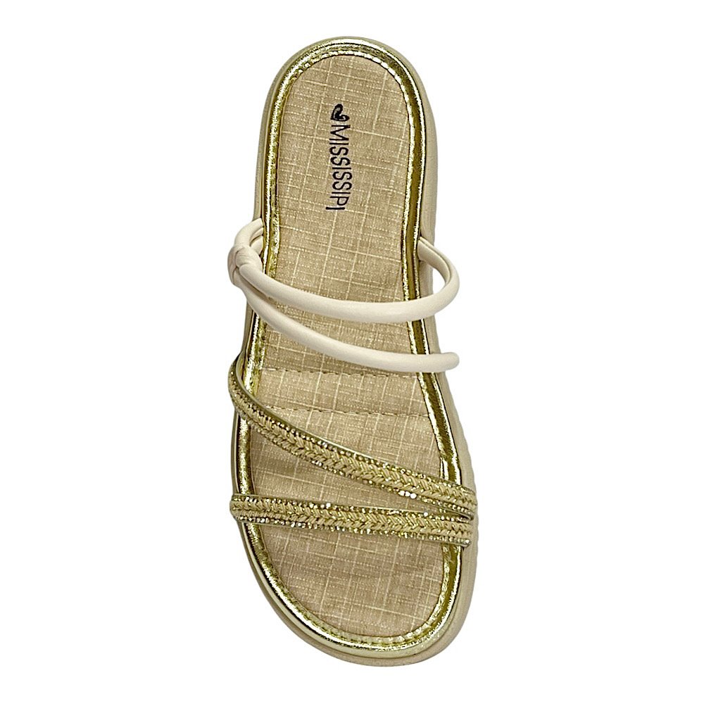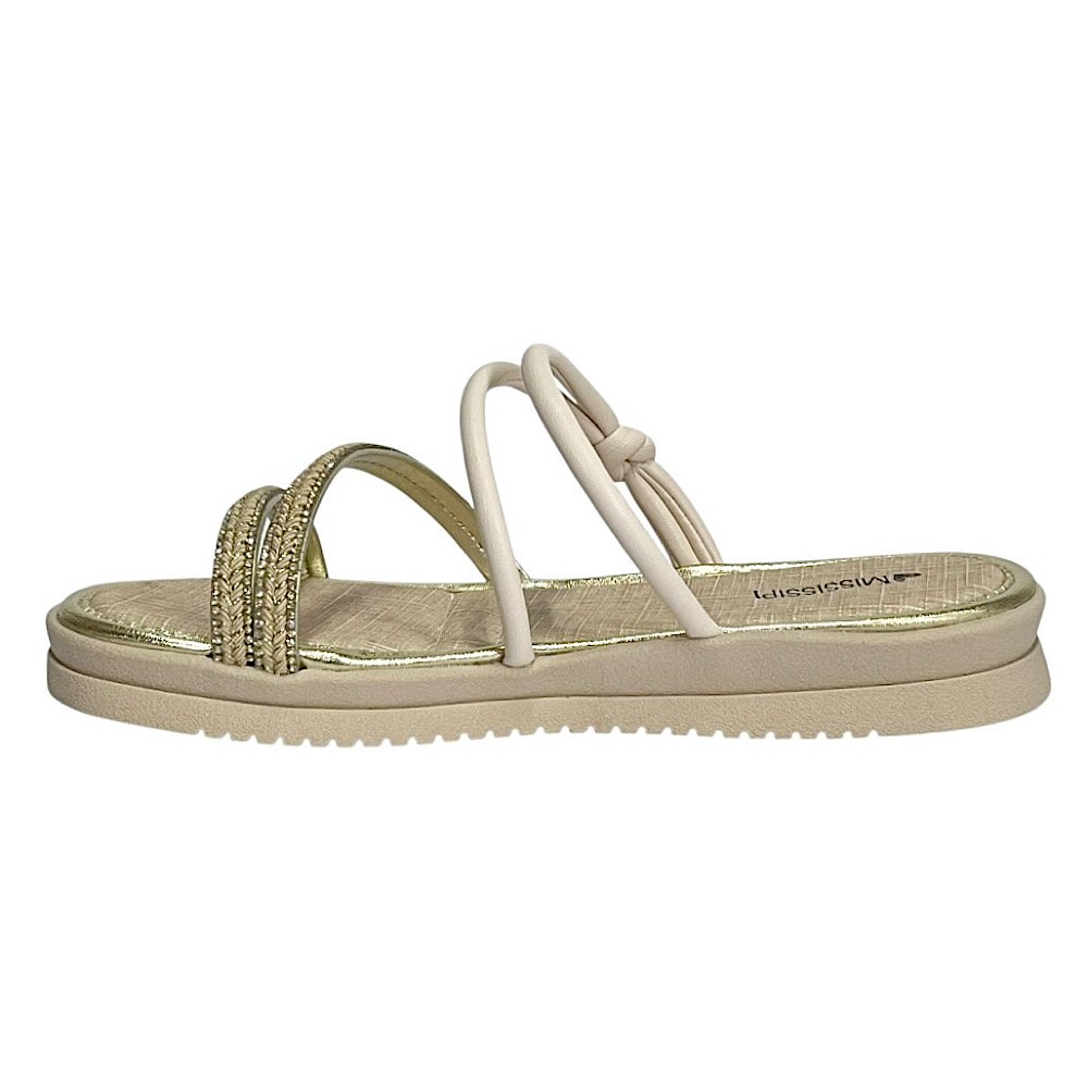 Delicado e moderno, o Tamanco Flatform Mississipi ME351 Latte é a escolha perfeita para quem busca conforto e estilo em todos os momentos. Confeccionado em material sintético de alta qualidade, o modelo apresenta tiras finas e elegantes, sendo duas com aplicação de brilho que trazem um toque sofisticado e feminino, e uma lisa com acabamento acetinado que envolve o pé com leveza e charme.