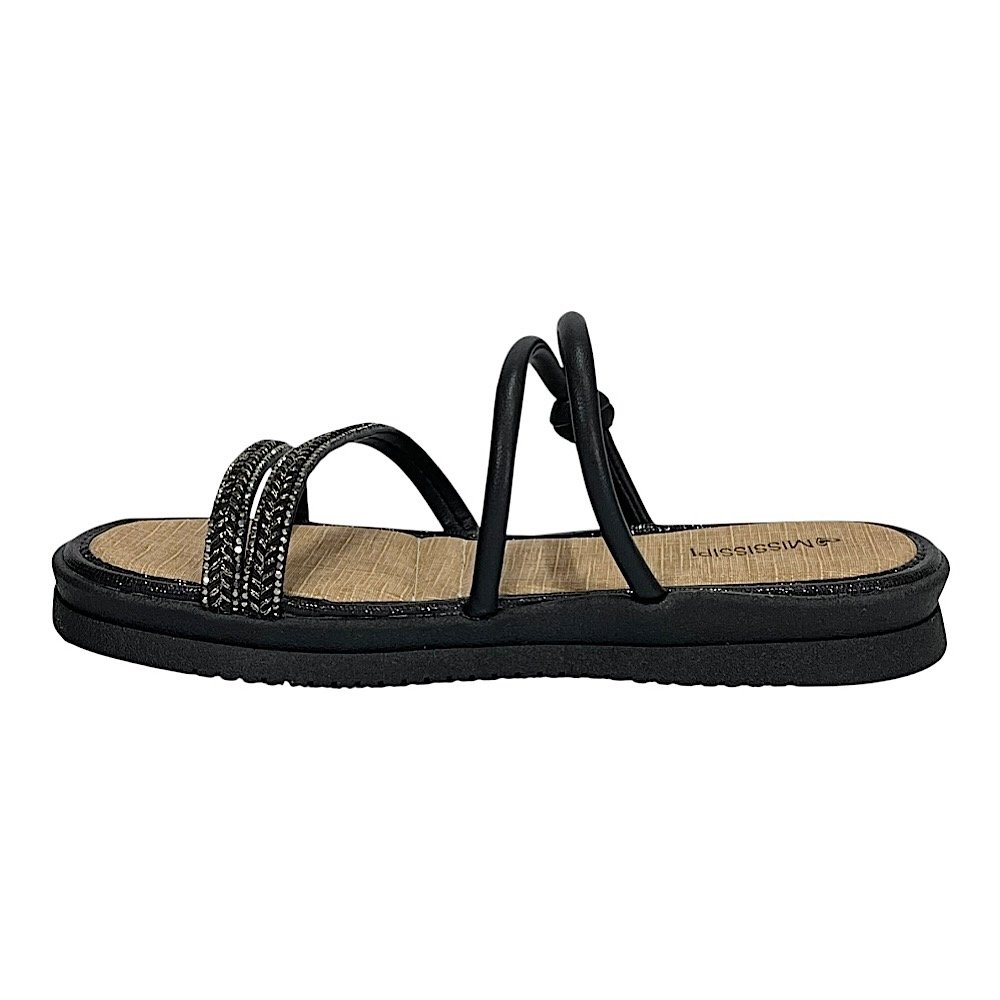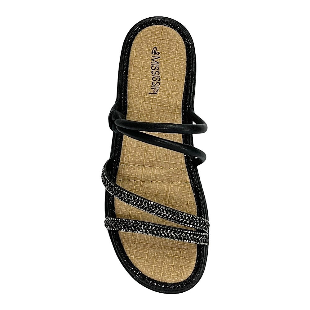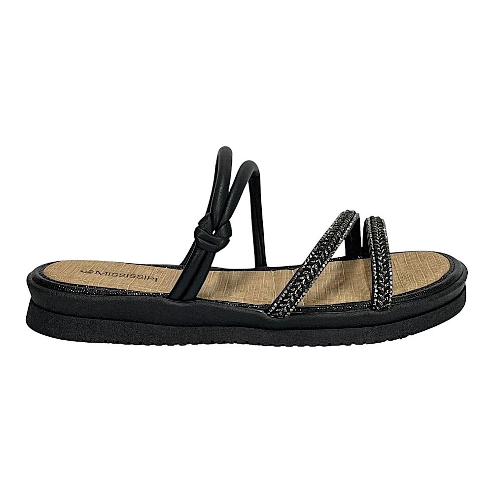 Ref: O Tamanco Flatform Mississipi ME351 Preto combina conforto, leveza e sofisticação em um design moderno e atemporal. Seu visual minimalista ganha destaque com as tiras delicadas sobre o pé, sendo duas adornadas com brilho sutil que conferem um toque glamouroso e elegante. O acabamento impecável e a tonalidade preta reforçam a versatilidade do modelo, perfeito para compor produções tanto casuais quanto mais refinadas.