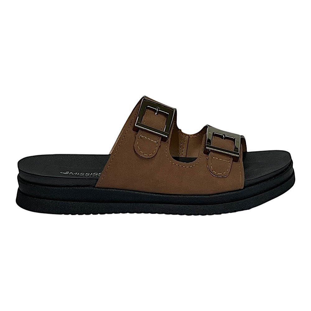 Ref: O Tamanco Slide Mississipi MF911 Marrom traduz o equilíbrio perfeito entre conforto e estilo, ideal para quem busca um visual moderno com um toque natural e elegante. Seu design com duas tiras largas e fivelas metalizadas douradas proporciona um charme discreto e sofisticado, enquanto a cor tabaco traz versatilidade e combina facilmente com diferentes tons e estilos de roupa.
