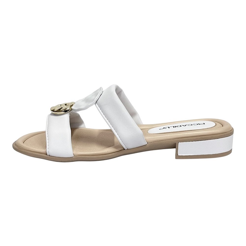 Charmoso e sofisticado, o Tamanco Piccadilly Taila Salto Baixo Branco é a escolha certa para quem busca unir conforto e estilo em um único calçado. Confeccionado em Napa Stretch Soft, envolve os pés com suavidade e flexibilidade, garantindo bem-estar durante todo o dia. O detalhe metalizado no cabedal adiciona um toque moderno e elegante, perfeito para compor produções versáteis e cheias de personalidade.