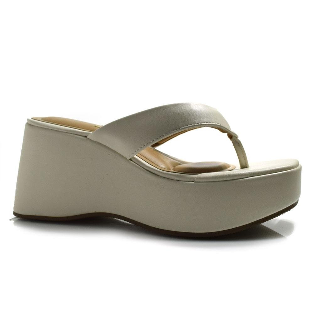 Seu formato de plataforma alonga a silhueta sem abrir mão da estabilidade, enquanto as tiras largas do cabedal garantem um calce confortável e envolvente. A palmilha oferece uma sensação de apoio e leveza a cada passo.