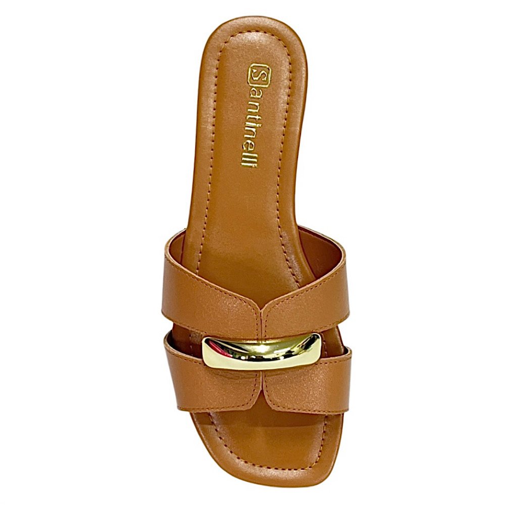 Ref: A Rasteira Santinelli é perfeita para quem valoriza conforto aliado à sofisticação. Produzida em material sintético de alta qualidade, traz tiras modernas com aplicação de detalhe metálico em dourado no cabedal, que agrega charme ao visual. O solado emborrachado oferece segurança e praticidade, tornando este modelo uma opção versátil para compor diferentes looks casuais com leveza e estilo.