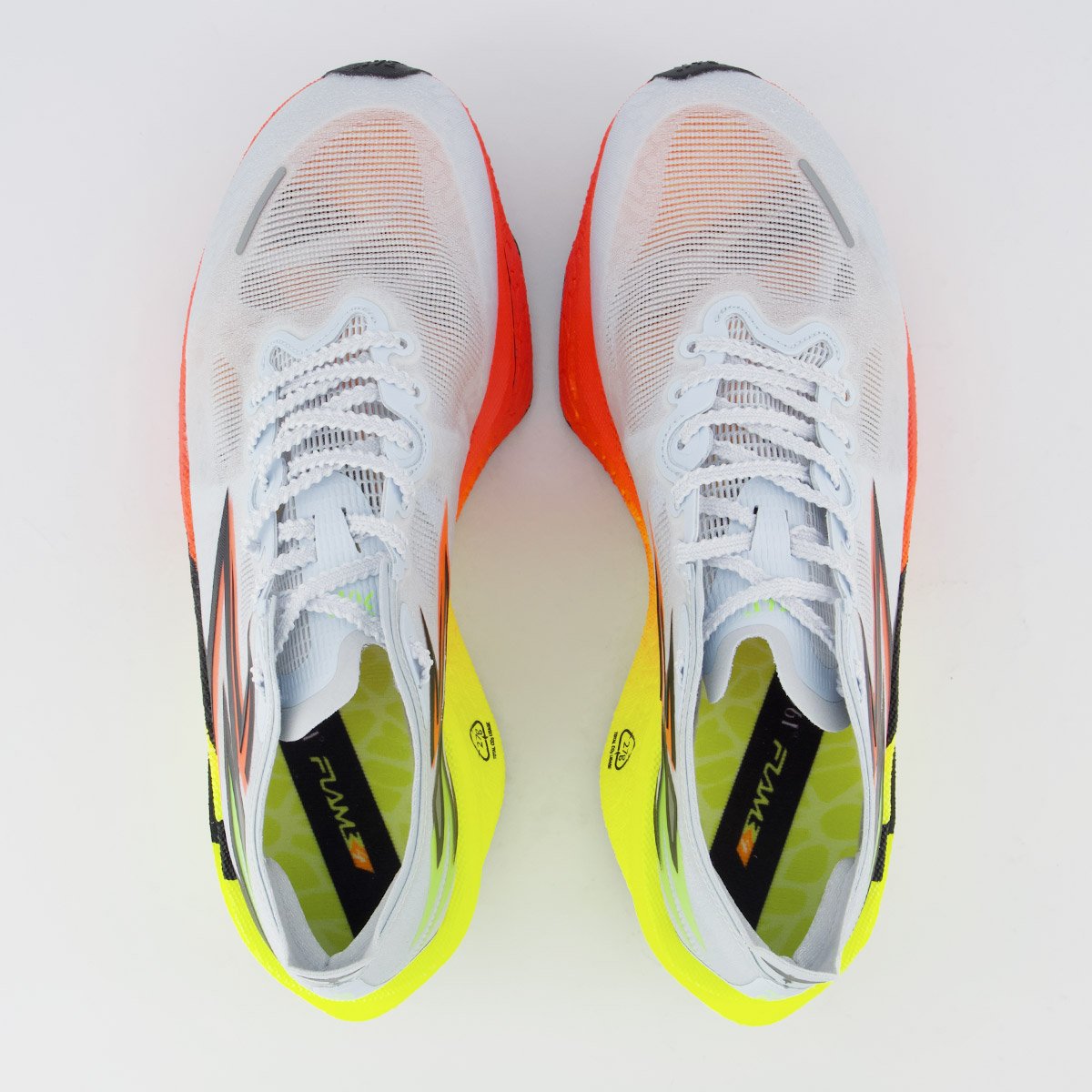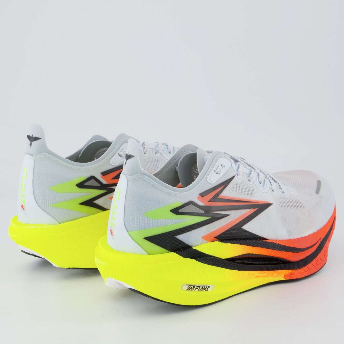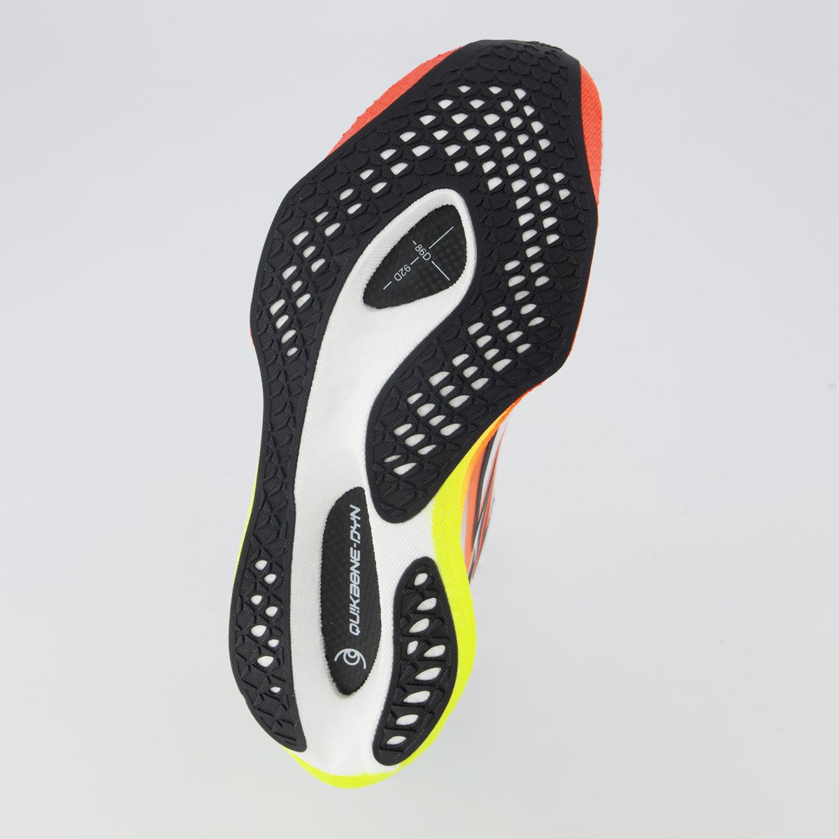 FLAMECQT: Amortecimento Duplo e Retorno de Energia: A entressola com tecnologia Qu!kFLAMECQT utiliza duas camadas de espuma de alta resiliência, oferecendo amortecimento leve, resposta elástica e economia de energia, especialmente útil em treinos longos e ritmo de prova.