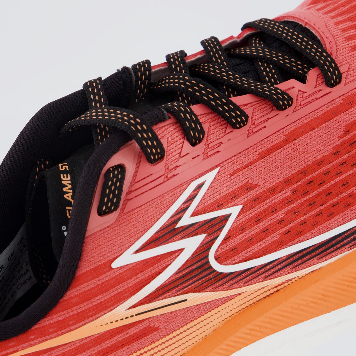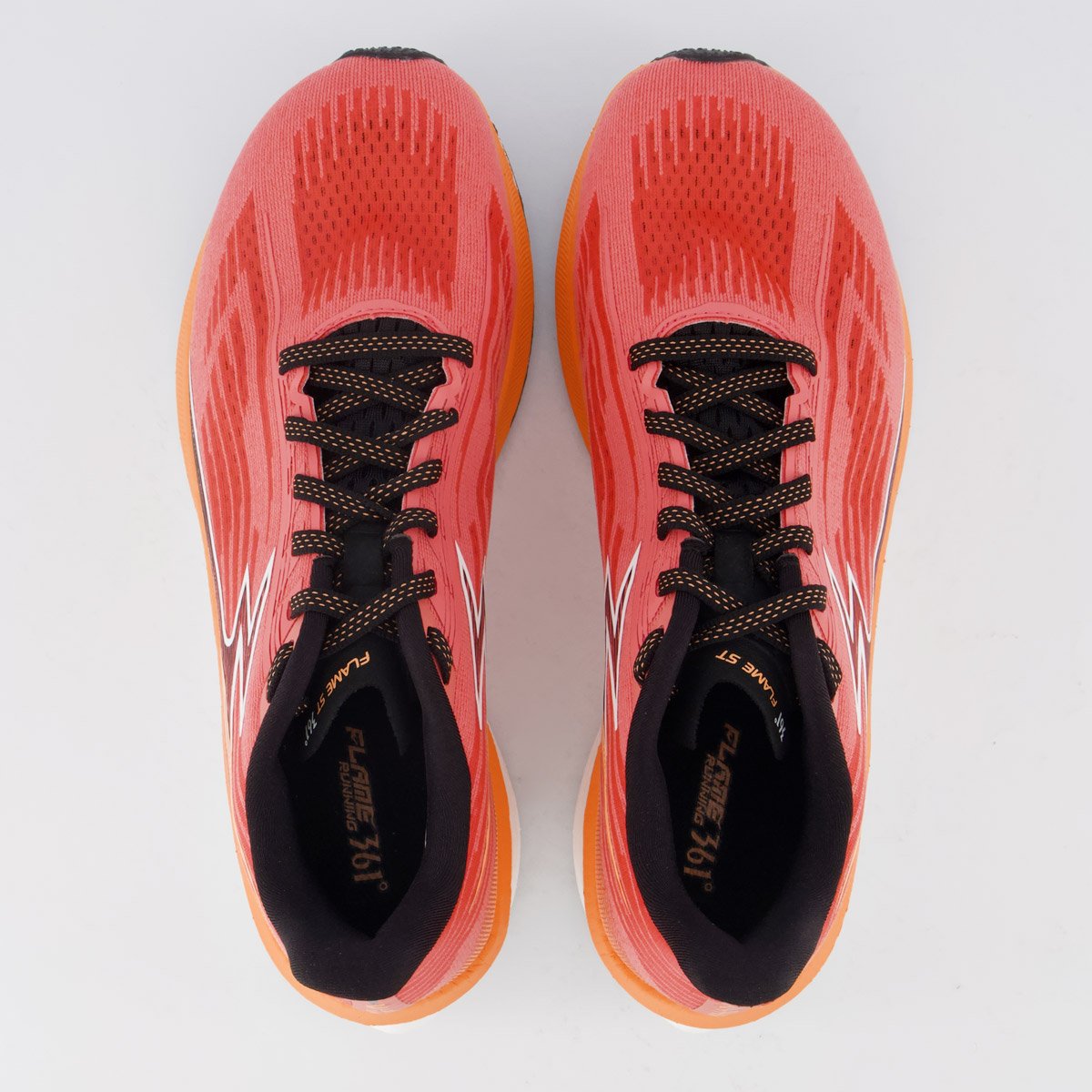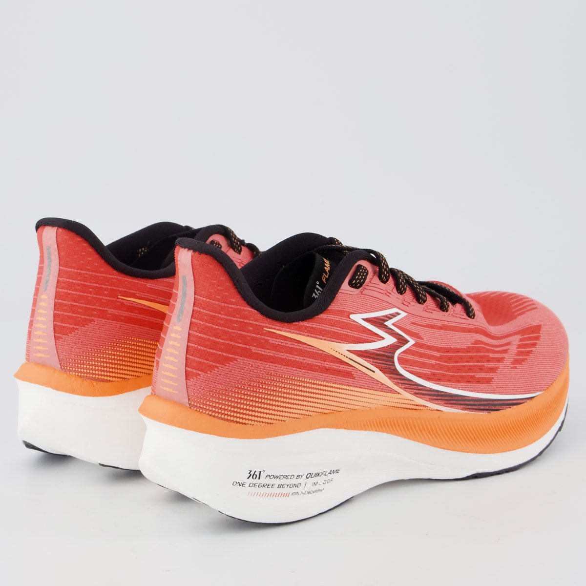 Entressola QU!KFLAME: Tecnologia desenvolvida pela 361°, feita com elastômero de nylon especial com espuma, 45% mais leve que EVA tradicional. Oferece excelente amortecimento e alta eficiência de retorno de energia, proporcionando uma corrida mais ágil e dinâmica.