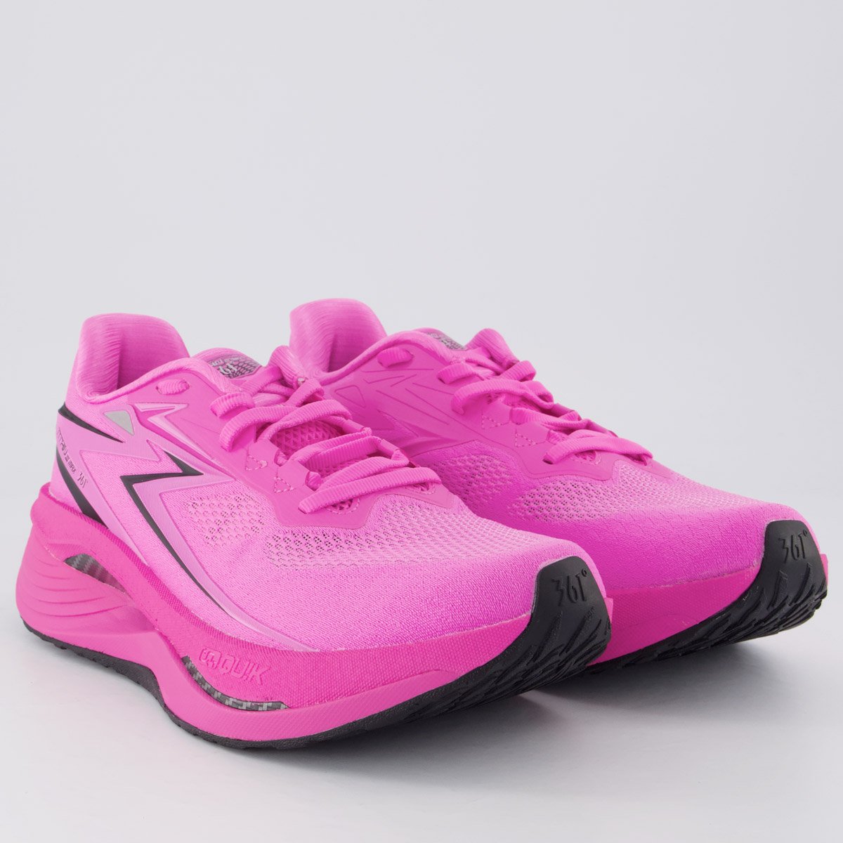 Tecnologia CQT QUIK e Quik Light: Entressola com QU!KCQTech (Carbon Qu!ktical Tech), feita de ETPU elástico de alta performance e CO2 reciclado industrial, oferecendo excelente amortecimento, leveza e durabilidade, com resiliência de até 75%, contribuindo para a neutralidade de carbono. A camada Quik Light utiliza materiais de tecnologia aeronáutica, 40% mais leves que espumas tradicionais, garantindo sensação de leveza e retorno de energia superior.