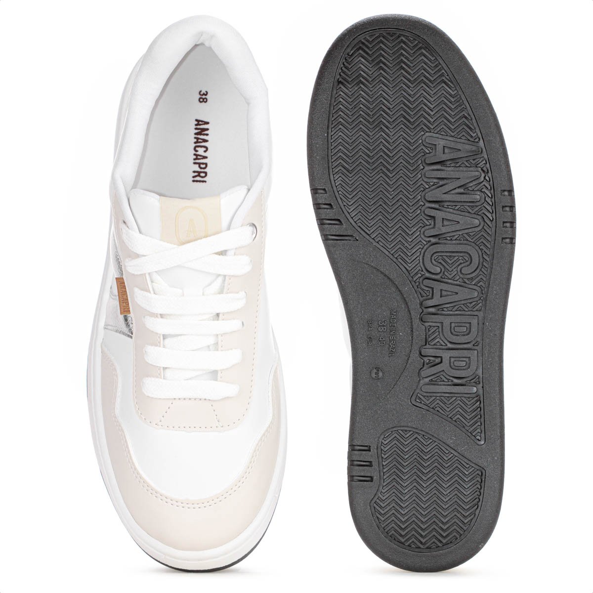 Tenis Anacapri AC1119 Virginia Fonseca Branco Prata e Creme - Feminino