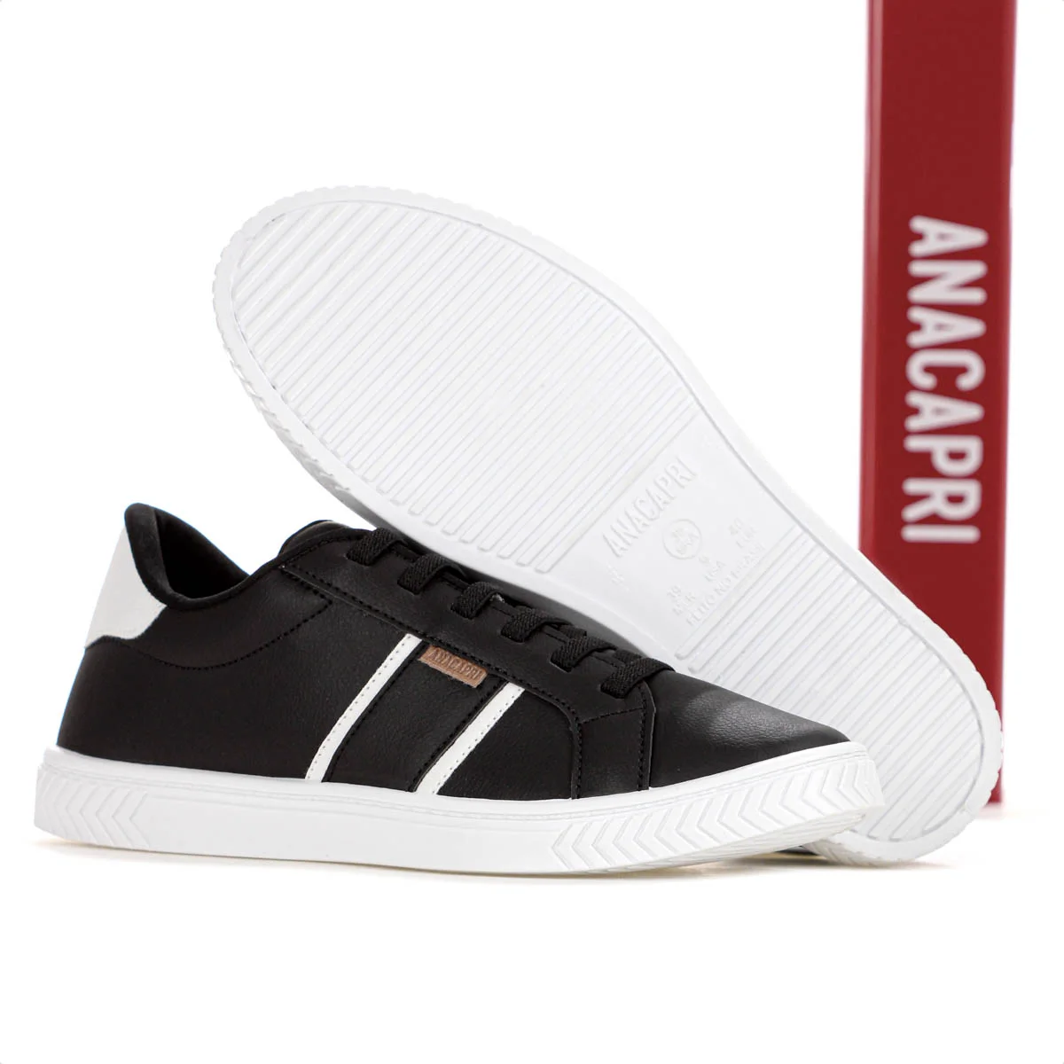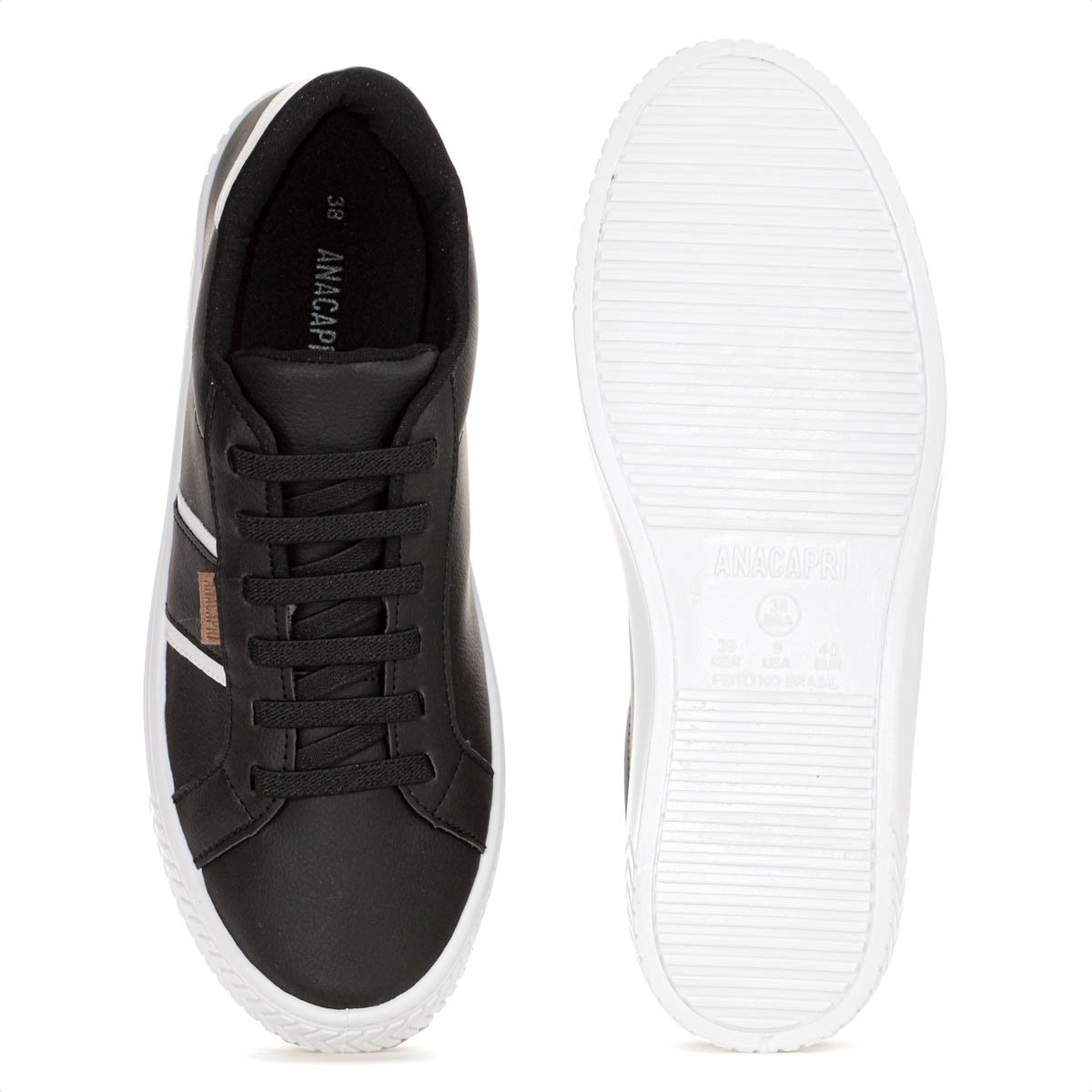 Versatilidade com um toque de estilo discreto! Tenis Anacapri Cami Preto e Branco - Feminino Parte superior do formulario Ficha Tecnica: Marca: Anacapri Cor: Preto com detalhe em branco Genero: Feminino Indicacao: Look urbano, diario e social Cabedal: Sintetico com acabamento liso e tag lateral com o nome da marca Palmilha: Textil Sola: Borracha com altura de 2cm Fechamento: Cadarco elastico (sem amarrar) Amortecimento: Leve Estabilidade: Neutro Design: Listras laterais e detalhe no tornozelo que valorizam o visual com sutileza Detalhes: Tag marrom com a marca na lateral e listras decorativas Estilo e conforto para o seu dia a dia! O Tenis Anacapri Cami e aquele modelo pratico e moderno que combina com tudo. Perfeito para mulheres que buscam descomplicar o visual sem abrir mao do charme. Porque investir: Seu design minimalista e enriquecido por listras discretas e um ponto de cor no tornozelo, tirando o basico do obvio. A palmilha confortavel e o solado de 2cm completam esse visual leve e contemporaneo. Conteudo da embalagem: 1 par de Tenis Anacapri Cami Preto e Branco - FemininoParte superior do formularioParte superior do formulario