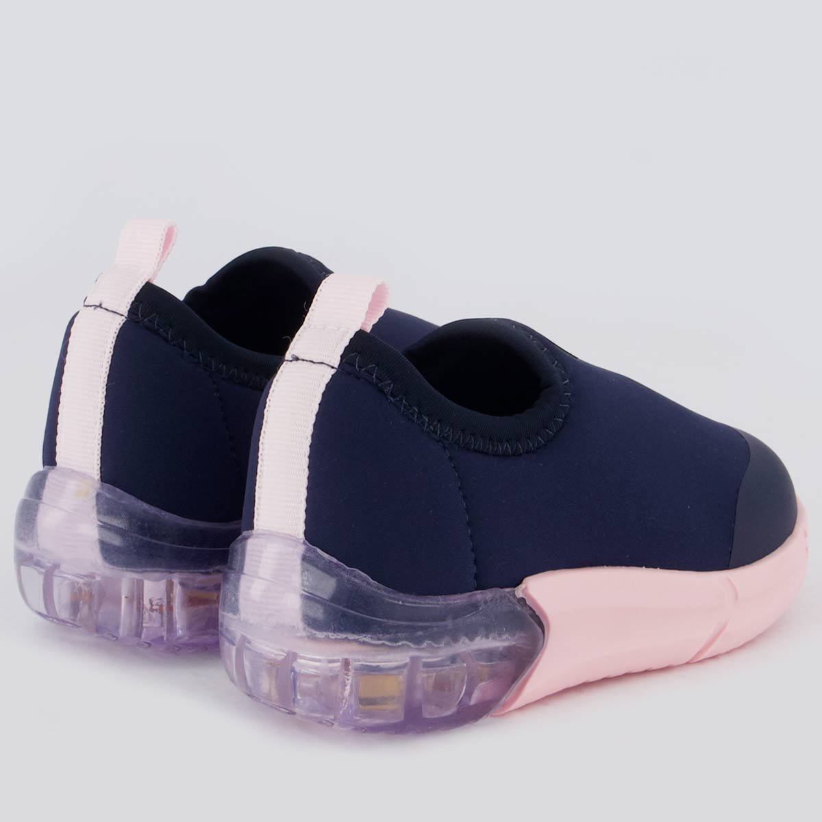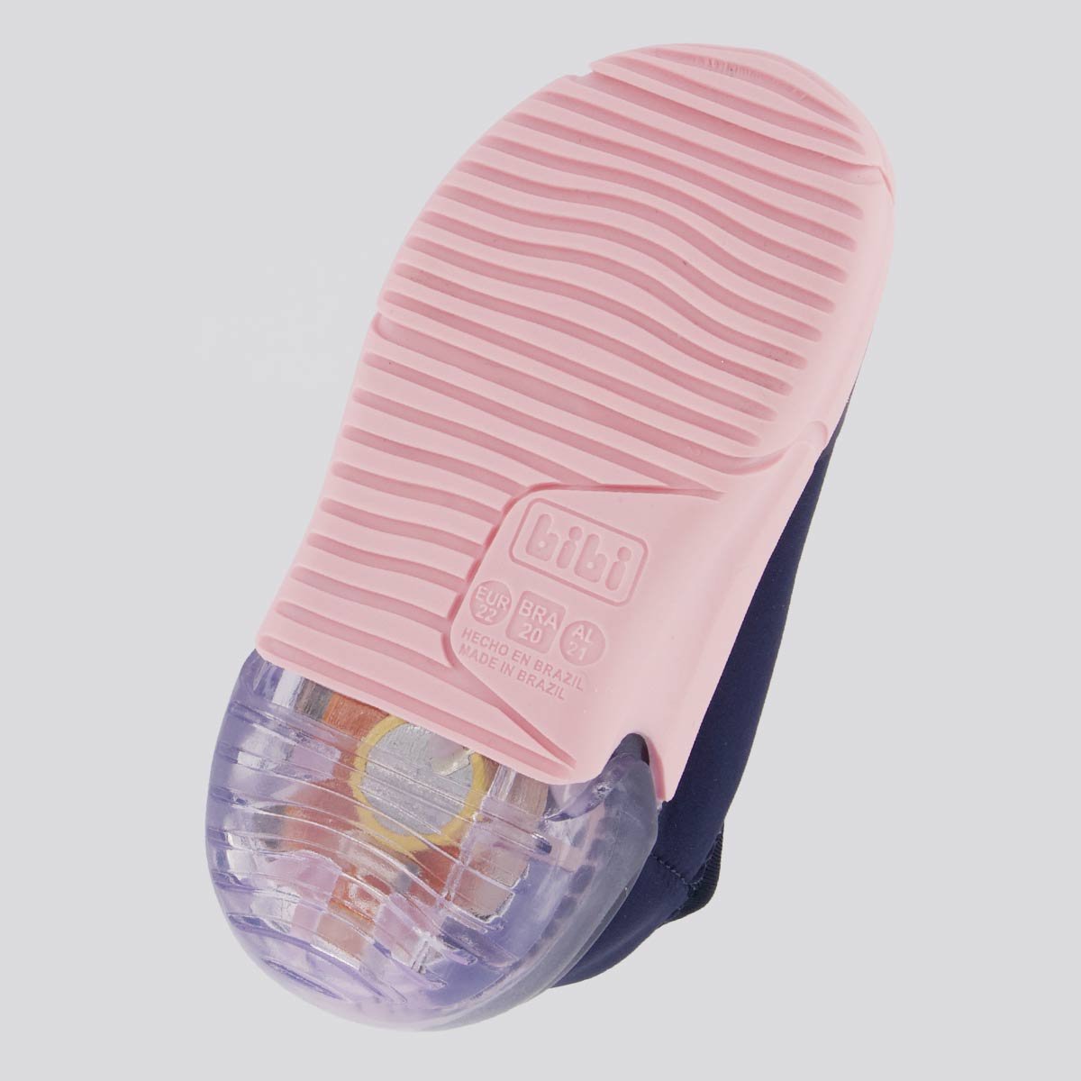 Solado: Borracha antiderrapante com luz de LED integrada, colado